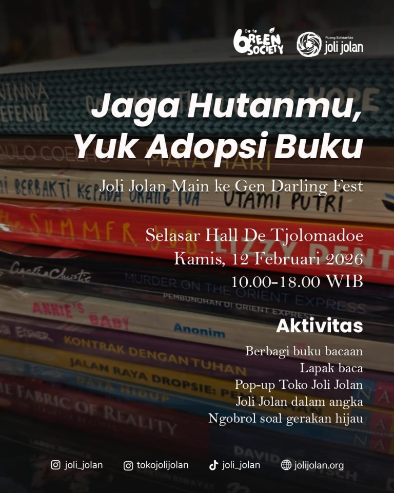 Joli Jolan menyediakan berbagai macam buku yang siap diadopsi di Gen Darling Fest 2026, yang bertempat di Selasar Hall De Tjolomadoe. Turut hadir dalam acara, Idgitaf dan Pandawara Group.